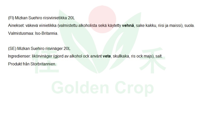 Mizkan Suehiro Vinegar 20L | Mizkan 寿司醋 20L / 箱