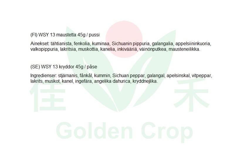 Spec (整箱规格): 45g/Units (单位)